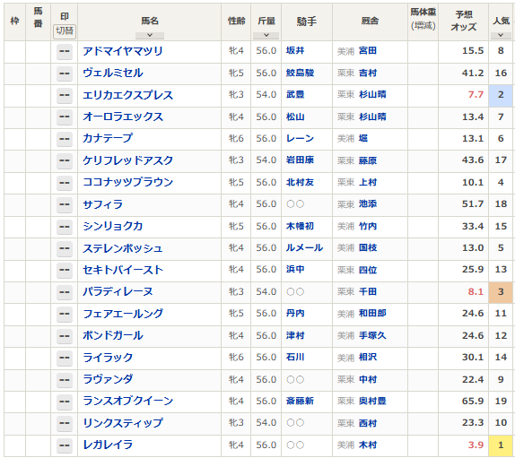 エリザベス女王杯 予想 ~ 出走予定馬 ~