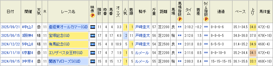 - 一方、G1で好走する根拠はない為、他出走馬との人気関係は要チェック