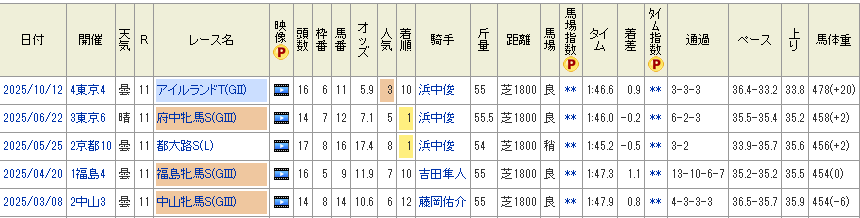 - 可もなく不可もなくの内容かつ洋芝はベスト舞台と推測できる