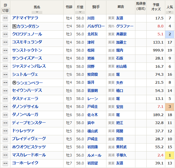 大きくは荒れない想定のレースではあるが、二桁人気想定の中にも実力馬がいそうで予想家の腕が試される。