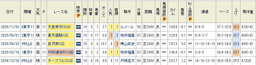 - とはいえ、いずれのレースでもG1最上位級とは若干の差がありそうで、根強い人がある本馬を積極的に狙う根拠も乏しい